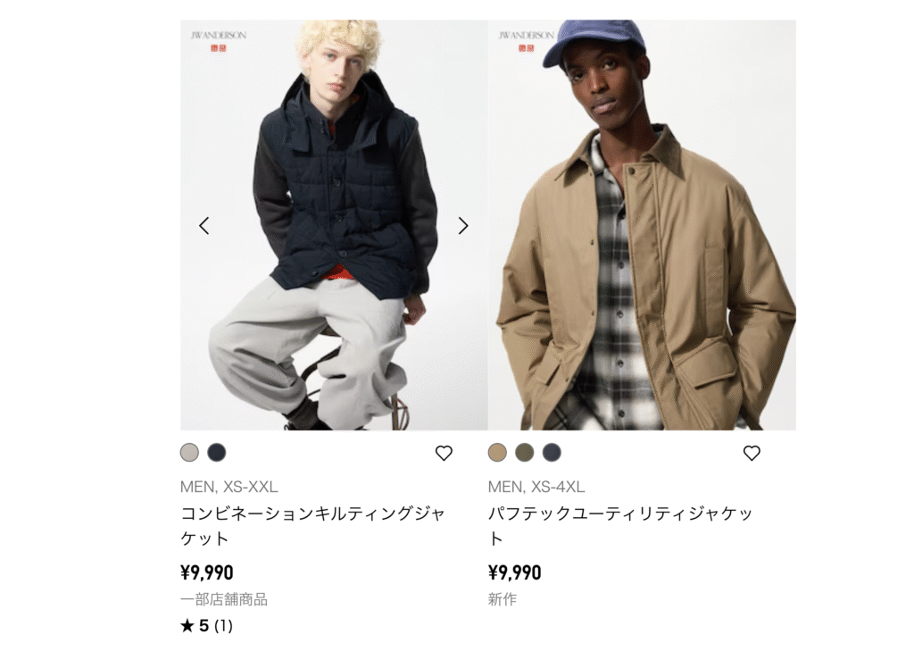 この場合、値下げ対象になりうるのは右側の「パフテックユーティリティジャケット」です。